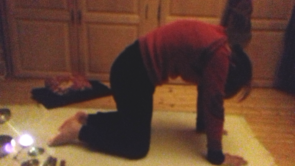 Donc pour une pratique le soir avec une visée de détente, de récupération. Voici une petite séquence simple (on peut la faire en totalité 40 minutes environ ou bien en partie seulement).  Prévenir son entourage, lui signifier que c’est un temps pour soi. À vous de voir si vous avez besoin de vous isoler complètement ou bien si vous pouvez profiter de votre séance en restant baigné par les bruits de la maison. Dans tous les cas, installez-vous, comme en cours, confortablement : tapis, couverture, coussin. Vous pouvez également, si cela vous tente, allumer une bougie comme une présence, un témoin discret et lumineux de votre démarche. Faire brûler de l’encens si vous aimez ou mettre sur vos poignets ou sur le plexus solaire, ou en dessous des pieds, quelques gouttes d’huile essentielle (une huile essentielle qui vous parle, qui vous inspire la lavande vraie, mandarine sont des huiles apaisantes par exemple). Certains souhaiteront peut-être mettre de la musique, d’autres resteront dans le silence.