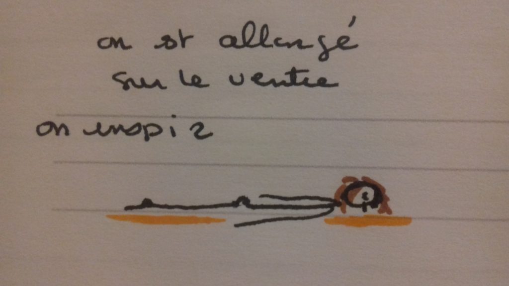 Puis on se repose en savasana et on est à l’écoute de ce qui se passe dans le corps, comment ça circule, devant, derrière, à gauche et à droite…le chaud et le froid.